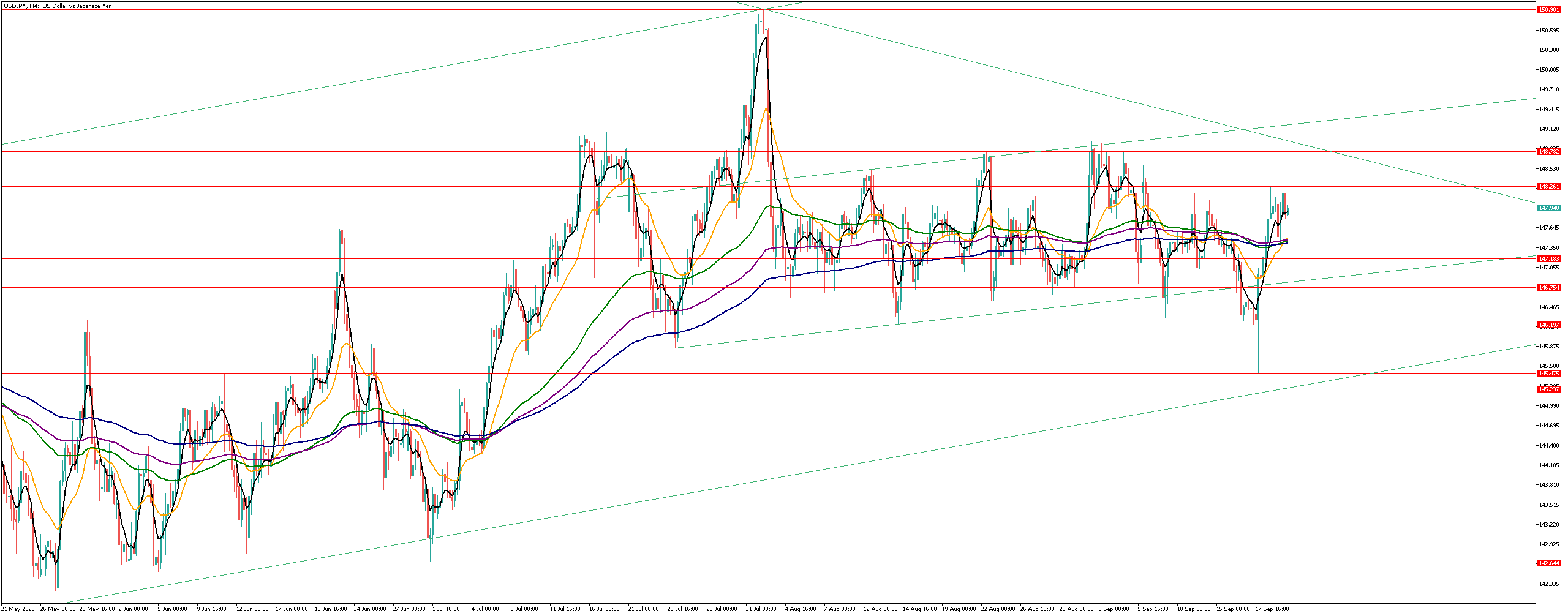 レンジ下限を下抜けしましたが下髭で再びレンジ内に戻って来ました。その後の反発上昇も強く再び148円台まで上昇しています。レンジ上限を上抜けし150円を目指す展開、レンジ下限を抜け142円台を目指す展開、どちらもそこまでの勢いがなく、上限下限付近からの逆張りという戦略が続きそうです。